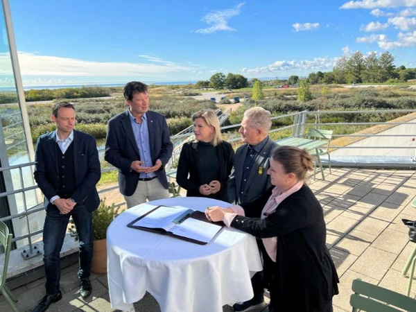I dag kl. 11, skrev de fem borgmestre under på aftalen. Underskrifterne blev givet i blå himmel med humøret højt på Arken, med udsigt ud over Køge Bugt Strandpark, som det hele jo handler om.