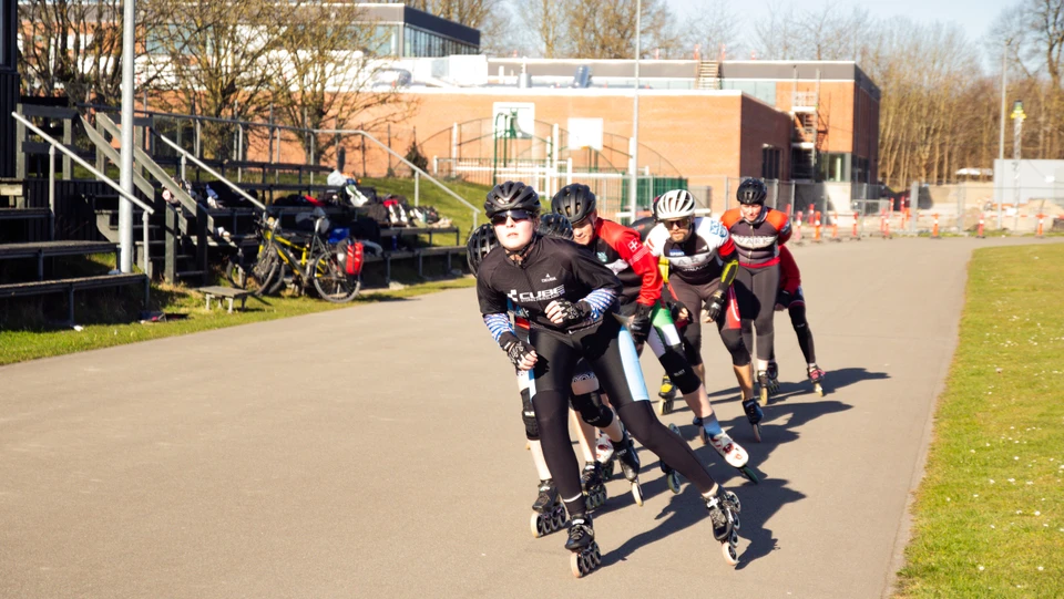 Pil Lindekron hilser med store smil på klubbens medlemmer, mens de sidder og spænder cykelhjelme og klikker spænderne på deres rulleskøjter på tribunen ved Idrætscentrets løbebane en solrig mandag eftermiddag.
